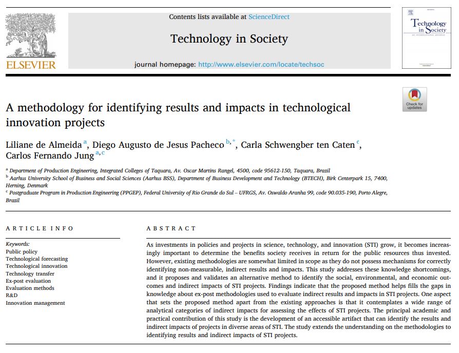 Nova publicação científica sobre Método para Avaliação de Impactos de Projetos de Inovação